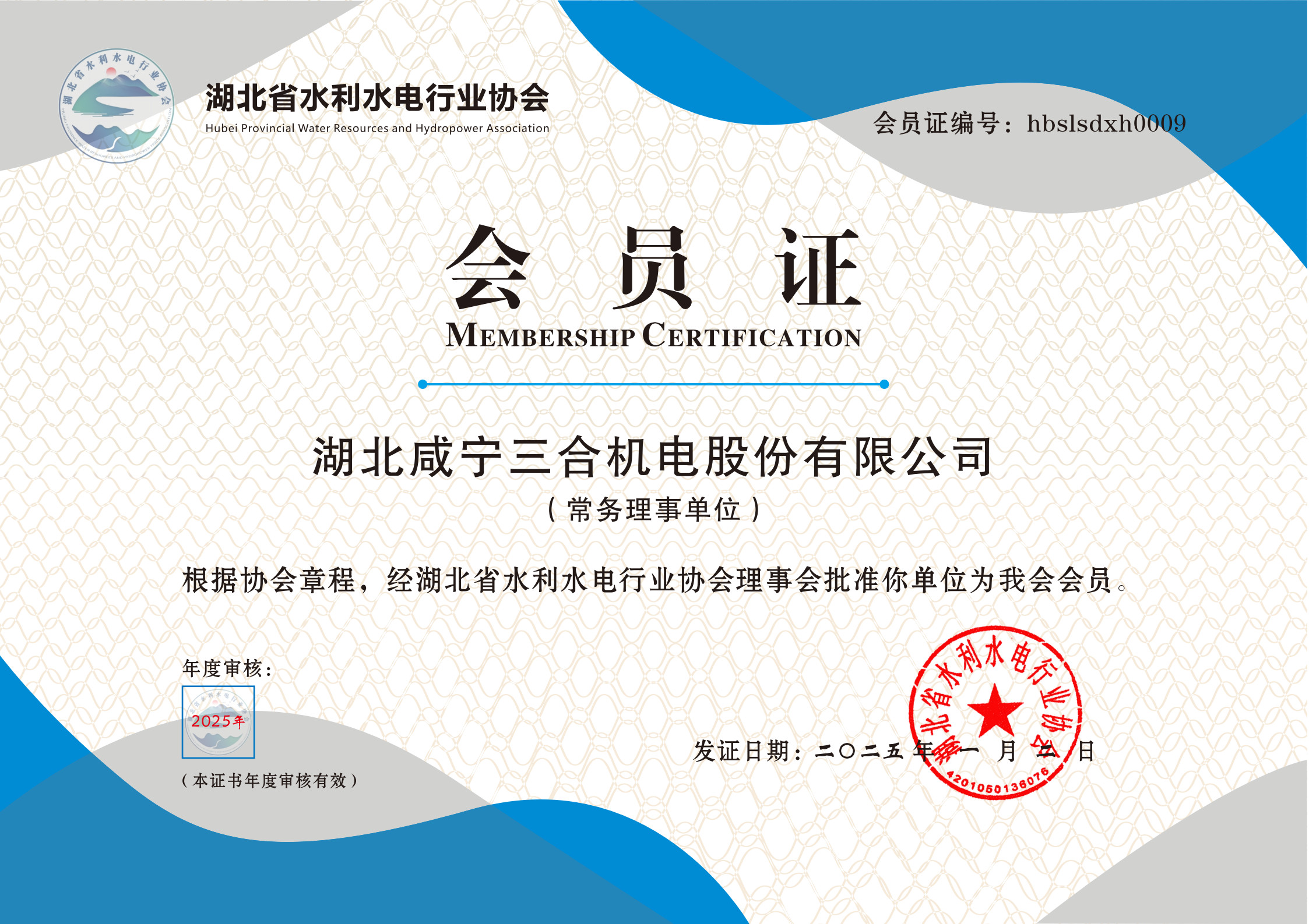 湖北省水利水電行業(yè)協(xié)會(huì )常務(wù)理事單位證書(shū)