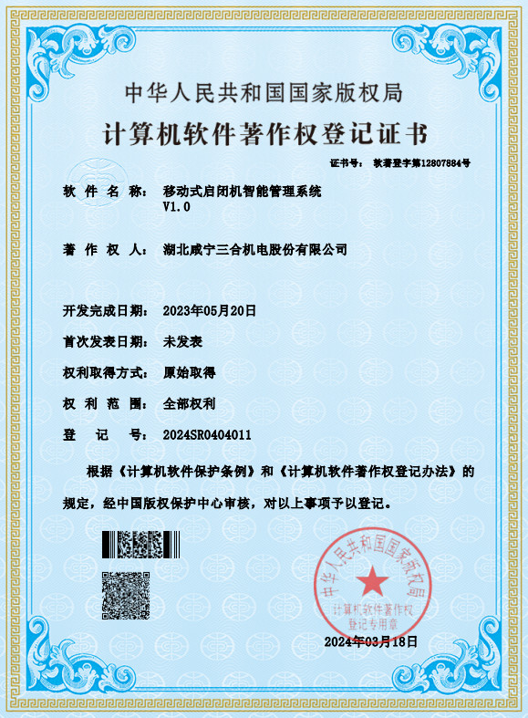20240318移動(dòng)式啟閉機智能管理系統--計算機軟件著(zhù)作權登記證書(shū)